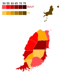General elections were held in Grenada on 7 December 1976.[1] The result was a victory for the Grenada United Labour Party of Eric Gairy, which won nine of the 15 seats, whilst the opposition People's Alliance (a coalition of the New Jewel Movement, the Grenada National Party and the United People's Party won the remainder. However, the elections were marred by fraud (and branded fraudulent by international observers), as Gairy's secret police, known as the Mongoose Gang, had been threatening the opposition.[2] Voter turnout was 65.2%.[3]