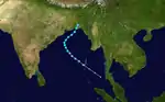 Another tropical depression formed in the Bay of Bengal on October 25 and moved northwestward.[1] The depression became a cyclonic storm the following day[3] The storm then turned to the northeast and then back to the northwest[1] were its winds peaked at 45 mph (70 km/h) before dissipating off the coast of Bangladesh on October 28.[3]