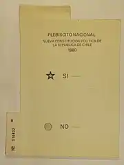 A constitutional referendum was held in Chile on 11 September 1980.[1] The proposed new constitution would replace the 1925 constitution, and was approved by over two-thirds of voters.[2]