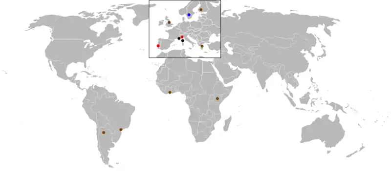 | Black = Tarmac | Brown = Gravel | Blue = Snow/Ice | Red = Mixed Surface |
