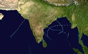The 1982 North Indian Ocean cyclone season was part of the annual cycle of tropical cyclone formation. The season has no official bounds but cyclones tend to form between April and December. These dates conventionally delimit the period of each year when most tropical cyclones form in the northern Indian Ocean. There are two main seas in the North Indian Ocean—the Bay of Bengal to the east of the Indian subcontinent and the Arabian Sea to the west of India. The official Regional Specialized Meteorological Centre in this basin is the India Meteorological Department (IMD), while the Joint Typhoon Warning Center (JTWC) releases unofficial advisories. An average of five tropical cyclones form in the North Indian Ocean every season with peaks in May and November.[1] Cyclones occurring between the meridians 45°E and 100°E are included in the season by the IMD.[2]