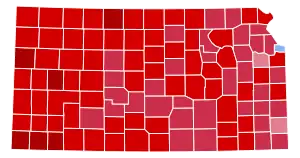 The presidential election of 1984 was a very partisan election for Kansas, with just under 99% of the electorate voting for either the Democratic or Republican parties, though several parties appeared on the ballot.[1] In typical form for the time, nearly every county in Kansas voted in majority for the Republican candidate, a particularly strong turn out even in this typically conservative leaning state. The only exception to this trend was Kansas City's Wyandotte County, which voted primarily Democratic.