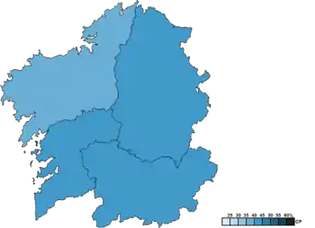 ![]() Constituency results map for the Parliament of Galicia | ||||||||||||||||||||||||||||||||||||||||||||||||||||||||||||||||||||||||||||||||||
