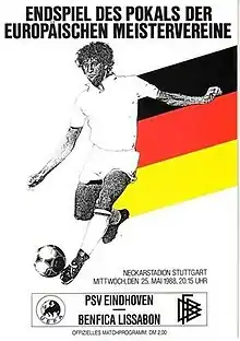 The 1988 European Cup Final was a football match played between PSV of the Netherlands and Benfica of Portugal to decide the champion of the 1987–88 European Cup. PSV won 6–5 on penalties after a goalless draw after extra time. The match was played at Neckarstadion, Stuttgart, on 25 May 1988. According to PSV player Berry van Aerle, it was not a particularly good match, with both teams very cautious. However, it was exciting until the end and concluded in a tense penalty shoot-out.[1]