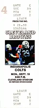 A ticket for a September 1988 game between the Colts and the Cleveland Browns.