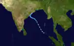 On December 14, the IMD reported that a depression had developed within the Intertropical Convergence Zone over the southern Bay of Bengal.[9] Over the next day the system moved north-westwards and gradually developed into a cyclonic storm, as the JTWC initiated advisories on the depression and assigned it the designation Tropical Cyclone 04B.[9][2] The system subsequently continued to intensify, as it recurved and moved through a break in the subtropical ridge of high pressure.[7][2] Late on December 16, the JTWC reported that the cyclone had peaked as a tropical storm, with 1-minute wind speeds of 85 km/h (55 mph).[12] Early on December 17, the IMD reported that the system had peaked as a Severe Cyclonic Storm with 3-minute wind speeds of 100 km/h (60 mph).[9] The system subsequently started to weaken later that day, as it encountered increasing upper-level wind shear associated with the mid-latitude westerlies.[2] During the next day the system weakened into a Cyclonic Storm, before it degenerated into a depression.[9] The system subsequently made landfall on Bangladesh near Cox's Bazar, before it was last noted over Myanmar by the JTWC during December 19.[9][12] The system caused some deaths and damages in both Bangladesh and Myanmar.[4]