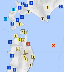 JMA seismic intensity map