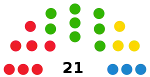 The following table lists party control in the Island Cabildos.[1] Gains for a party are displayed with the cell's background shaded in that party's colour.