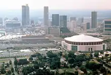 Beyond international recognition, the Games resulted in many modern infrastructure improvements. The mid-rise dormitories built for the Olympic Village, which became the first residential housing for Georgia State University (Georgia State Village), are now used by the Georgia Institute of Technology (North Avenue Apartments). As designed, the Centennial Olympic Stadium was converted into Turner Field after the Paralympics, which became the home of the Atlanta Braves Major League Baseball team from 1997 to 2016. The Braves' former home, Atlanta–Fulton County Stadium, was demolished in 1997 and the site became a parking lot for Turner Field; the Omni Coliseum was demolished the same year to make way for State Farm Arena. The city's permanent memorial to the 1996 Olympics is Centennial Olympic Park, which was built as a focal point for the Games. The park initiated a revitalization of the surrounding area and now serves as the hub for Atlanta's tourism district.[36]