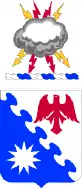Ultramarine blue is traditionally associated with Aviation units. The alerion (a heraldic eagle without beak or talon) is symbolic of flight and further suggests the fixed-wing variety of aircraft. The star, a symbol of achievement, also represents rotary-winged aircraft. The nebuly partition line is suggestive of clouds and sky.