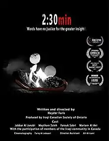 2:30 min is an Iraqi experimental film by Iraqi film director Hayder Faris. The film won "Best Experimental Film" award at Canada Independent Film Festival, which was held on 26 January 2018 in Montreal, Canada.[1]