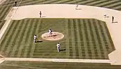 ![]() Yankees' fielders huddling on the pitcher's mound during an August 2001 away game | |