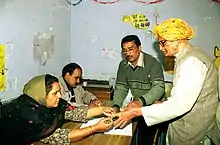 An old man at a Polling booth to cast his vote during Assembly Elections of Delhi on 1 December 2003 (Monday)