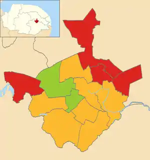 ![]() Map showing the 2004 local election results in Norwich. | |||||||||||||||||||||||||||||||||||||||||||||||