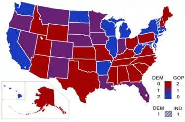 |  Results of the elections: Democratic gain Democratic hold Republican gain Republican hold No election | ||||||||||||||||||||||||||||||||||||||||||||||||||||||||||||||||||||||||||