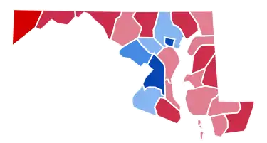 | Baltimore County | 182,474 | 51.62% | 166,051 | 46.98% | 4,954 | 1.40% | 16,423 | 4.64% | 353,479 |