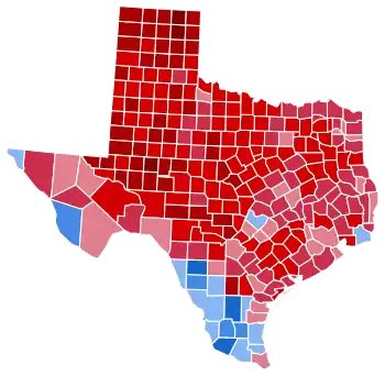 Texas has not voted for a Democratic presidential nominee since 1976, and has been a Republican stronghold since the 1980s. A former governor of the state, Bush’s performance stands as a high water mark for Republican presidential candidates in Texas, and remains the last time that a Republican has won more than 60% of the state’s vote, or that a Democrat has won less than 40%.