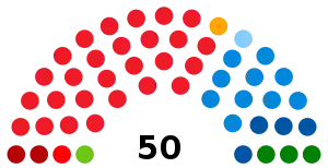 The Legislative Assembly of Emilia-Romagna (Assemblea Legislativa dell'Emilia-Romagna) is composed of 50 members. 40 councillors are elected in provincial constituencies by proportional representation using the largest remainder method with a Droop quota and open lists, while 10 councillors (elected in bloc) come from a "regional list", including the President-elect. One seat is reserved for the candidate who comes second. If a coalition wins more than 50% of the total seats in the Council with PR, only 5 candidates from the regional list will be chosen and the number of those elected in provincial constituencies will be 45. If the winning coalition receives less than 40% of votes special seats are added to the Council to ensure a large majority for the President's coalition.[1]