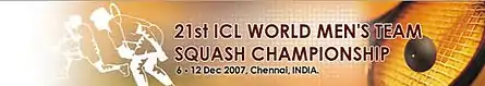 The 2007 Men's World Team Squash Championships is the men's edition of the 2007 World Team Squash Championships organized by the World Squash Federation, which serves as the world team championship for squash players. The event were held in Chennai, India and took place from 6–12 December 2007. The tournament was organized by the World Squash Federation and the Squash Rackets Federation of India. The England team won his fourth World Team Championships beating the Australian team in the final.