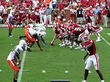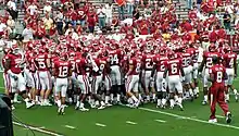 On July 19, a preseason poll voted on by members of the media that cover the Big 12 was released. The Sooners were chosen to finish second in the Big 12 South behind Texas. They finished nine votes behind the Longhorns but 44 points above Texas A&M, the third team.[1] This poll was released in anticipation of the Big 12 media day which began on July 23, 2007. Most publications had the Sooners ranked between five and ten in the preseason.[2][3][4][5] Phil Steele's self-titled publication, which is considered by many to be the most accurate college football preseason prediction magazine,[6] had the Sooners ranked number three in terms of how they would finish the year and how strong the team is going into the year.[7] On August 2, 2007, Coach Bob Stoops announced at a rally that the names of players would be put back on the team's jerseys. They had been removed in a re-design before the 2006 season.[8]