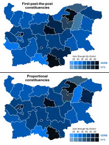 Parliamentary elections were held in Bulgaria on 5 July 2009.[1][2] With 40% of the vote, the decisive winner of the elections was the established in 2006 personalistic party of Boyko Borisov, GERB. The Socialist Party, in power before the election, was in second place, with around 18%. Оnce-ruling National Movement Simeon II did not cross the 4% threshold and won no seats. The turnout was 60.2%, one of the lowest ever. Following the election, GERB leader Boyko Borisov became Prime Minister. Just like all the previous parliamentary elections since the fall of communism, the government was not re-elected.