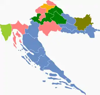 ![]() Map of the results of the council elections in each county. The relative winners: HDZ coalition SDP coalition IDS coalition | |||||||||||||||||||||||||