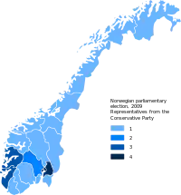 The 2009 parliamentary election was held in Norway on 13 and 14 September 2009.[1] Elections in Norway are held on a Monday in September, usually the second or third Monday, as determined by the king.[2] Early voting was possible between 10 August and 11 September 2009,[3] while some municipalities also held open voting on 13 September.[1] Voters elected 169 members for the Storting,[4] each for a four-year term.[5] Voter turn-out in the 2009 general elections was 76.4%.[6]