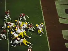 At the beginning of the 2011 season, both teams were ranked in the top five.[8] After Alabama's victory over Arkansas and LSU's over West Virginia on September 24, their November 5 game was viewed by many in the national media as a playoff with the winner advancing to the 2012 BCS National Championship Game.[9][10] After the week ten polls were released, the game officially became the first college football, regular season No. 1 vs. No. 2 matchup since the 2006 Michigan vs. Ohio State football game, and the first all-time regular season No. 1 vs. No. 2 matchup between SEC conference foes.[11][12] Due to the No. 1 vs. No. 2 rankings against conference rivals and the hype that led up to the matchup, the game was referred to as the "Game of the Century."[13][14][15][16][17][18]