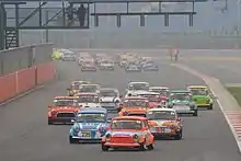 Start of the race at Silverstone. Mini Miglias in the foreground and Se7ens in the background.