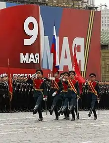 Minister of Defence Anatoly Serdyukov was the parade inspector while Colonel General Valery Gerasimov, the then Deputy Chief of the General Staff was the parade commander.[1] For the first time, the new battledress duty uniforms were worn by almost all the parading units. A year later, due to the massive unpopularity of the uniforms, it was reverted to the old style.[2]