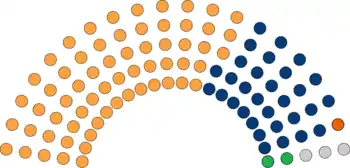The Civic Platform party won a plurality with 207 seats in the Sejm, followed by the Law and Justice Party with 157 seats. The breakaway Palikot Movement won 40 seats and the second biggest incumbent coalition party, the Polish People's Party, won 28 seats. The Democratic Left Alliance got 27 seats.[13] In the Senate, Civic Platform won an absolute majority with 63 seats, while Law & Justice came away with 31. The only other party to achieve Senate representation was the Polish People's Party, which won 2 seats. Four independents were also elected.[15]