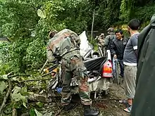 Early rescue operations included four teams of National Disaster Response Force been rushed to Sikkim and five more teams were being sent from Kolkata.[16] However, South and West Sikkim remained inaccessible delaying rescue operations owing to landslides caused by rainfall. A group of 14 tourists were rescued by the army from north Sikkim. The army had deployed 72 columns including infantry troops, combat engineers, four Dhruv and five Cheetah helicopters. Rain and landslides had hampered the rescue efforts of workers searching for survivors.[17][37]300 people mostly labourers were given shelter in Chungthang Gurdwara.Food was prepared in gurdwara langar with more than 600 hot meals at all meal times.[38]