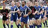 Wigan's eight-match winning spree was toppled in the first rugby league match ever to be played at the Stade Yves-du-Manoir in Montpellier, after Daryl Millard's second try of the night handed Catalans Dragons a 20–12 victory.[72][73] The seventeenth round fixture against Castleford Tigers came just two days after the inaugural International Origin Match which featured George Carmont, Leuluai and Richards playing for the Exiles, and Sean O'Loughlin, Michael McIlorum and both Tomkins brothers representing England.[74] Consequently, Origin match-winner Carmont and Sam Tomkins were both rested against Castleford, a match which Wigan looked to be comfortably winning with a 4–22 lead before a second half performance which Maguire described as "unacceptable"[75] allowed the Tigers to come back, with Kirk Dixon missing a late-minute conversion meaning the match ended in Wigan's third draw of the season.[76] The Warriors returned to winning ways against St Helens in the final derby game of the regular season with a 10–32 win at the Saints' temporary Stobart Stadium base, a result which took Wigan to the top of the Super League table before Huddersfield reclaimed the position the day after.[77][78] Wigan then leapfrogged Huddersfield into second place in the table after defeating them in a comprehensive 46–12 win, with Sam Tomkins scoring another hat-trick and Hock making his first appearance for the club in two years following the completion of his drugs ban received in 2009.[79]