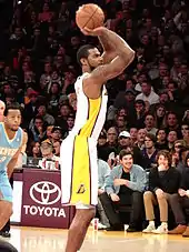 The 2012–13 Los Angeles Lakers season was the 65th season of the franchise, its 64th season in the National Basketball Association (NBA), and its 53rd season in Los Angeles. The Lakers acquired All-Stars Steve Nash and Dwight Howard, giving them a starting lineup of five All-Stars consisting of Kobe Bryant, Pau Gasol, Metta World Peace, Nash, and Howard, who were expected to contend for the franchise's 17th NBA championship. Instead, the Lakers struggled to qualify for the playoffs after changing head coaches and implementing multiple offenses. However, a weak defense and multiple injuries were the team's biggest problems.[1] They exited the playoffs in the first round for the first time since 2007. Additionally, this was the first season since 2006-07 without longtime point guard Derek Fisher, who had helped the team win its last five championships. Widely regarded as a failed superteam mainly due to injuries, the Lakers started out the season as a top 2 favorite to win the championship (the other team being the defending champions Miami Heat who ended up repeating) and the Lakers were projected to win 58 games. The Lakers were also the top favorite to win the Western Conference.[2][3][4][5]