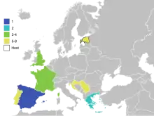 | Winner of Group 7 | 8 (2002, 2004, 2006, 2007, 2008, 2009, 2010, 2011) |