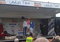 World Time Trial Champion Ellen van Dijk (Boels–Dolmans) won the time trial 12 seconds ahead of Lisa Brennauer and 24 seconds ahead of Trixi Worrack (both Specialized–lululemon).[3] Van Dijk said after the race that the time trial was very hard and she started a bit too fast. Furthermore, she said that she was very happy with the victory. She invested a lot of time in the time trial the last period and was pleased that after several second places in time trials this year she now took home the victory.[4]