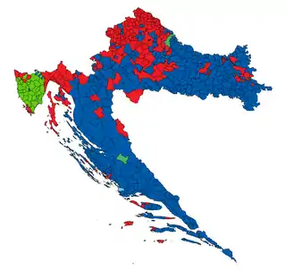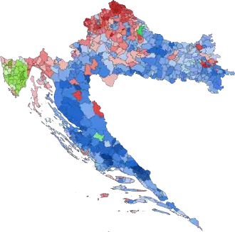 The elections yielded a surprise victory for the conservative HDZ, though most opinion polls had predicted the People's coalition would have the largest share of seats in Parliament.[15] The People's Coalition's unexpected defeat was, among other things, attributed to the release of a leaked audio recording of former Prime Minister and coalition chairman Zoran Milanović speaking at a private meeting with Croatian war veterans. In the recording Milanović used numerous derogatory terms, calling Serbs ʽʽpitifulˮ and stating that ʽʽBosnia and Herzegovina is not a countryˮ and it is thought that these statements undermined support for the People's Coalition among minority voters.[16] The HDZ, which had trailed the People's coalition in opinion polls for over two months prior to the election and was thought to be facing certain defeat, managed under its new leader, MEP Andrej Plenković to shed the image of being a corruption-engulfed right-wing party for a more Europe-oriented centrist one.[16] Low turnout is also thought to have contributed to the unexpectedly large number of seats won by the HDZ, as their voters and supporters were expected to have a high turnout rate on election day. After the election Milanović announced that he would not stand for reelection as party chairman of the SDP in the upcoming leadership election.[17] Following the conservatives' victory, the stock market reacted generally favourably to the election results.[18]