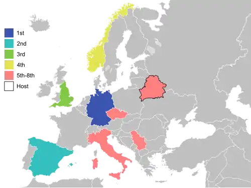 - 1 Bold indicates champion for that year. Italic indicates host for that year.