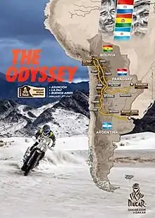 The 2017 Dakar Rally was the 39th edition of the event and the ninth successive year that the event was held in South America. The event started in Asunción, Paraguay on January 2, then ran through Argentina and Bolivia, before returning to Buenos Aires on January 14 after 12 stages of competition.[1] This year saw the introduction of the new UTV category.