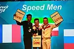 125 athletes competed in the men's speed competition. Reza Alipour (5.630s) won the final against Bassa Mawem (fell). In the small final Stanislav Kokorin (6.028s) won against QiXin Zhong (fell) and thus claimed the bronze medal.[3]