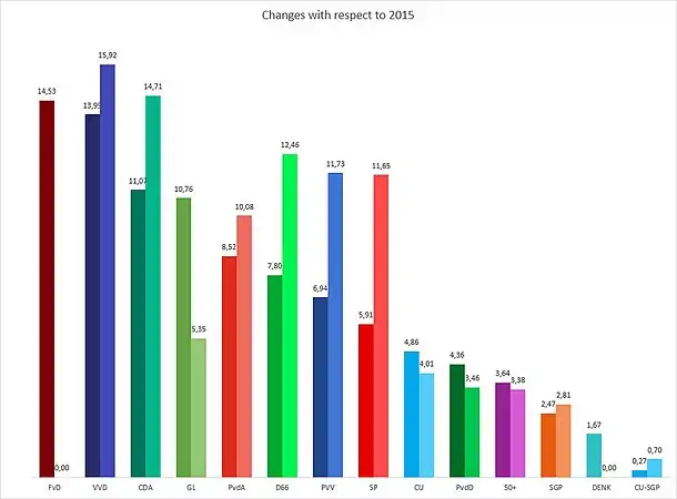 | Party for Freedom | 504,948 | 6.94 | -4.79 | 40 | –26 | |||