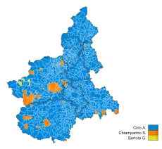 | Sergio Chiamparino | 783,805 | 35.80 | 1 | Democratic Party | 430,902 | 22.44 | 9 | |||