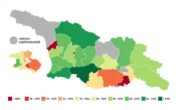 Parliamentary elections were held in Georgia on 31 October and 21 November 2020 to elect the 150 members of Parliament. The ruling Georgian Dream party led by Prime Minister Giorgi Gakharia won re-election for a third term in office, making it the first party in Georgian history to do so.[2] The election also saw a record number of opposition parties elected to parliament.