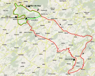 The race started and finished in Huy, following a similar route as the 2019 race. The final 32 km loop was covered twice, totalling 124 km.[2]