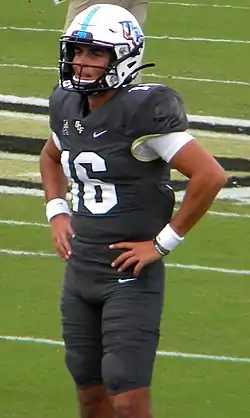 The Knights started out the season 2–0 with a come-from-behind win against Boise State and a rout of Bethune–Cookman. However, the season was nearly derailed after the team suffered a rash of injuries during a last-minute loss at Louisville. Quarterback Dillon Gabriel suffered a season-ending broken clavicle, and by season's end, elected to enter the NCAA's transfer portal, eventually opting to play at Oklahoma. Injuries to running back Isaiah Bowser, defensive tackle Kalia Davis, wide receiver Jaylon Robinson, linebacker Tatum Bethune, center Corey Thornton, and several others, shuffled the starting lineups.[1] Freshman Mikey Keene took over as starting quarterback, winning six of his nine starts, leading the Knights to an 8–4 record regular season (third place in the AAC) and 7–0 at home. The Knights concluded their season by defeating the Florida Gators in the Gasparilla Bowl.