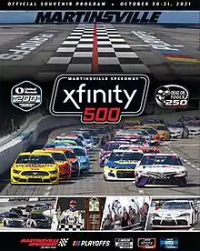 The 2021 Xfinity 500 was a NASCAR Cup Series race held on October 31, 2021, at Martinsville Speedway in Ridgeway, Virginia. Contested over 501 laps -- extended from 500 laps due to an overtime finish, on the .526 mile (.847 km) short track, it was the 35th race of the 2021 NASCAR Cup Series season, the ninth race of the Playoffs, and final race of the Round of 8.