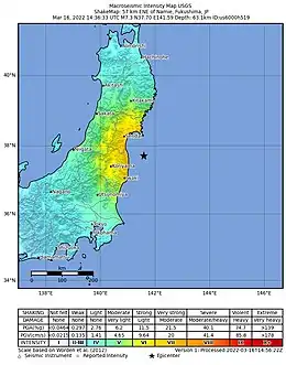 - "M 6.0 - 62 km ENE of Namie, Japan". earthquake.usgs.gov. U.S. Geological Survey. Archived from the original on 18 March 2022. Retrieved 16 March 2022.