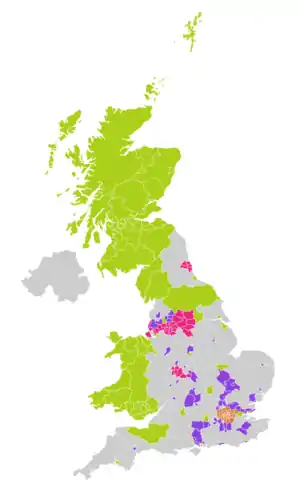 London borough Metropolitan borough Unitary authority District council City of London Corporation No election | |||||||||||||||||||||||||||||