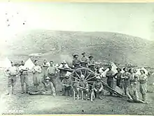 Formed on 31 January 1900, the Elswick Battery, as it was then known, set off for South Africa to take part in the Second Boer War.[1] The Battery was armed with 12 pounder guns manufactured by Armstrongs at Elswick.[1] The guns had been paid for by Lady Meux, an eccentric brewery heiress.[1]