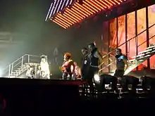 On September 9, 2006, Jackson went to France to perform "So Excited" at NRJ's Back to School concert, along with past single "Nasty".[42] While on The Oprah Winfrey Show, she was interviewed and performed both tracks again. The show aired on September 25.[43] Jackson held an album signing in Times Square at the Virgin Megastore on September 26, the album's release date.[44] Jackson performed live on the Today show — as part of their Concert Series — three days later.[45] In October, she traveled to Japan to promote the album and wore a red kimono during a press conference there.[46] In November, Jackson performed on The Ellen DeGeneres Show,[47] while she was interviewed on The Tyra Banks Show to further promote the album.[48] On December 4, the singer opened the 2006 Billboard Music Awards with a medley of "The Pleasure Principle" and "So Excited".[49][50] During rehearsals for the awards two days prior, she taped a performance featuring two classic singles from her catalog, "Nasty" and "Let's Wait Awhile", which was streamed on American Express' website.[51]